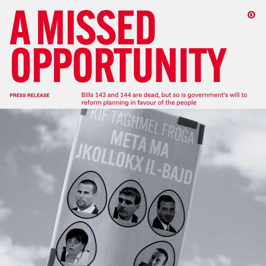 The announcement of a general election on the 30th May means that the contentious Planning Reform bills are no longer on Parliament’s standing orders. In a statement, Il-Kollettiv Secretary Wayne Flask expressed his relief at the fact that Bills 143 and 144 will not be pushed through in their present form, but said that the group is disappointed by the government’s lack of appetite for reform in the sector.